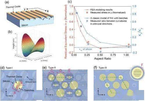研究人員提出了三種類型的介觀結(jié)構(gòu),依靠精確圖案化,完全控制整個(gè)襯底背面的應(yīng)力狀態(tài)。